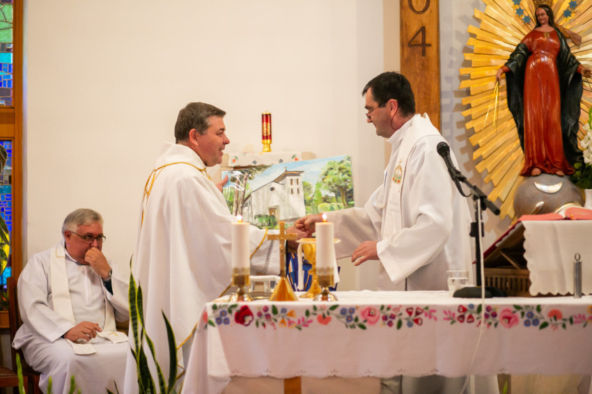Finta József általános érseki helynök, a kecskeméti főplébánia plébánosa és Péntek Zsolt, a kápolna lelkésze köszöntötték a kecskeméti születésű Tóth Tamás atyát.