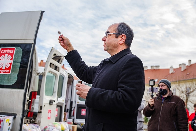 A Szombathelyi Egyházmegye plébániái és a Szombathelyi Egyházmegyei Karitász folyamatos segítséget nyújtanak a sziszeki egyházmegye földrengés sújtotta területén; a csütörtökön útnak indított segélyszállítmányukat újabb követi majd. A karitatív szervezet ezúttal építőanyagokat – blokktéglát, tetőcserepet, csempét, járólapot és hőszigetelő anyagot –, készételkonzervet, almát, valamint gyermekjátékokat szállított a sziszeki adománygyűjtő központba. A szállítmányt indulás előtt Székely János megyéspüspök áldotta meg.