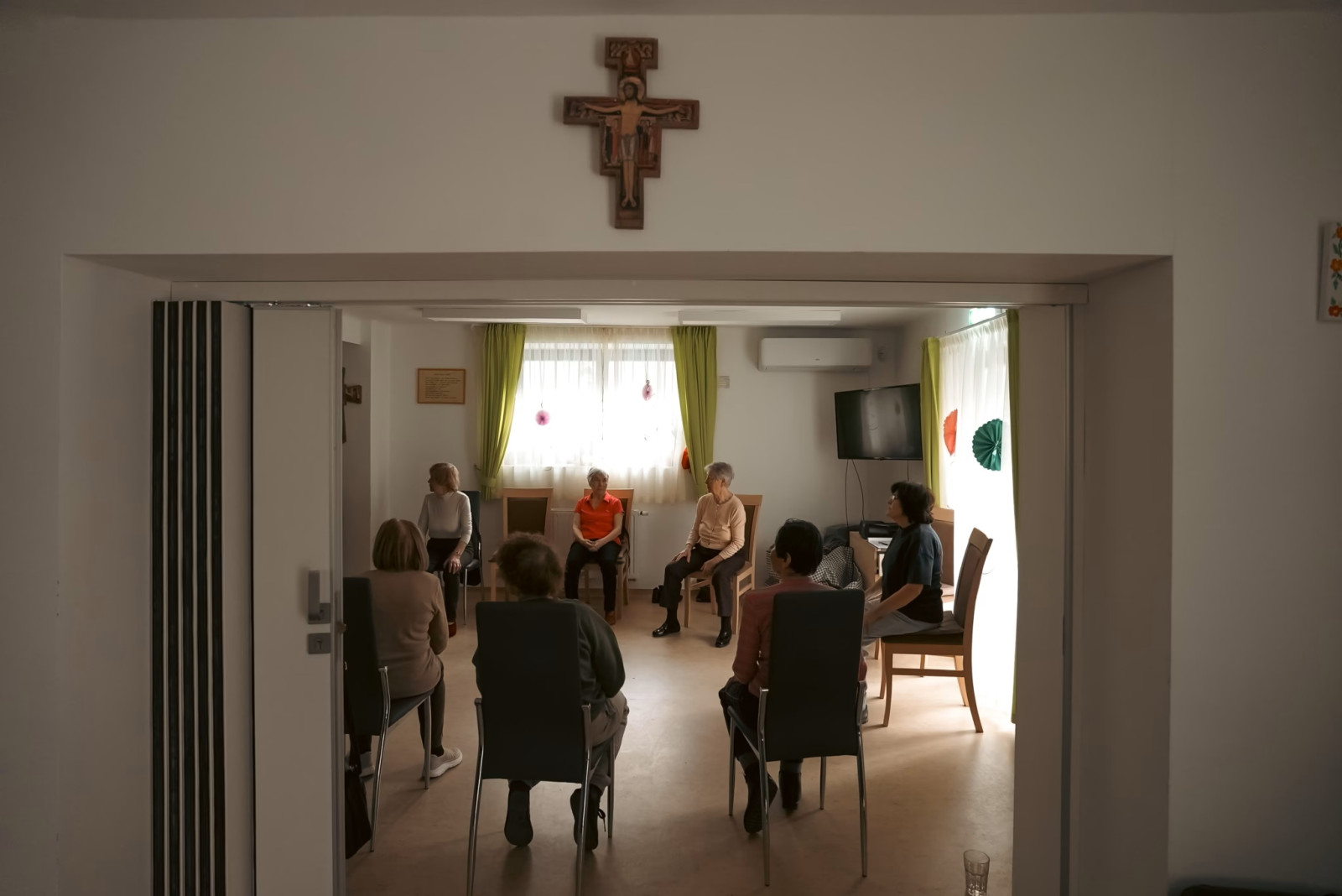 A Budapesten, Pasaréten működő Gondviselés Háza Gondozási Központ olyan közösséget nyújt az idősek számára, amelynek alapja az, hogy senkit nem hagynak magára. A nappali ellátáson túl az Idősek Klubja programlehetőségeket is kínál a résztvevőknek, erősítve: tartoznak valahova, és van kihez fordulniuk. Pont ezt a gondolatot adta át Formanek Tamás szociális referens is, amikor megnyitotta az aznapi rendhagyó imaórát, és arra biztatott a Naphimnusz és az egyik dal kapcsán: örüljünk, hogy Isten minden teremtményéről gondoskodik. Az ég madarairól, a rét virágairól – és rólam is.