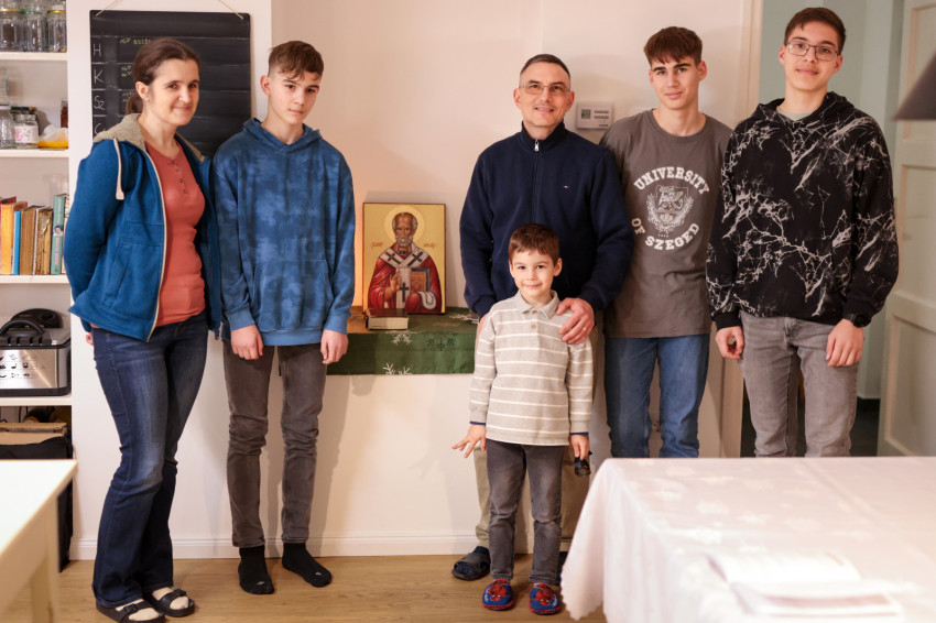 A négygyermekes Mészáros család is azok közé tartozik, akik az otthonukban fogadták a Szent Miklóst ábrázoló zarándokikont. Régóta élnek Felsővároson, évtizedes kötődésük van a templomhoz. Huba és Katalin a szentségi házasságra készülve vonódtak be igazán az Egyház életébe. Személyes ösztönzést jelentett számukra, amikor Amászka László minorita atya megszólította a játszótéren a gyermekével játszó Hubát, és meghívta őket az ovismisékre. A kötődést tovább erősítette, hogy gyerekeik a felsővárosi katolikus óvodába jártak.
