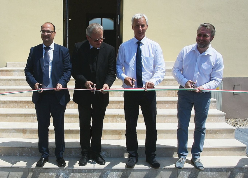 A beszédeket követően az eseményen részt vevők imádságos jelenlétében Böcskei László megyéspüspök megáldotta a felújított épületet.