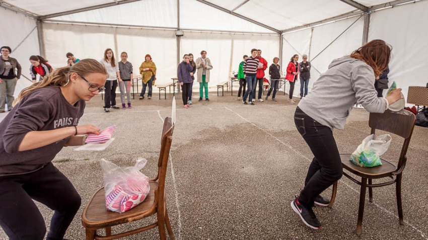 A szentmise után színpadi programokkal folytatódott a pünkösdi családi nap, melyek során bemutatkoztak az egyházmegye fenntartásában működő iskolák. A fakultatív programok között szerepelt az egyházmegyei hittanverseny is, amelynek központi témája az irgalmasság szentévéhez és a Szent Márton-évhez kapcsolódott, de nem maradtak ki természetesen a magyar szentek sem. A vetélkedő során öt szellemi és öt ügyességi játékra került sor, ezek között szerepelt például egy beteg ellátása, valamint Szent Erzsébet kenyerének kiosztása az éhezők között, játékos módon – mondta el Visyné Farkas Katalin szervező.