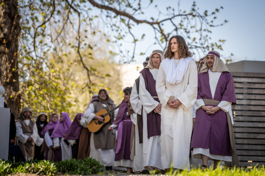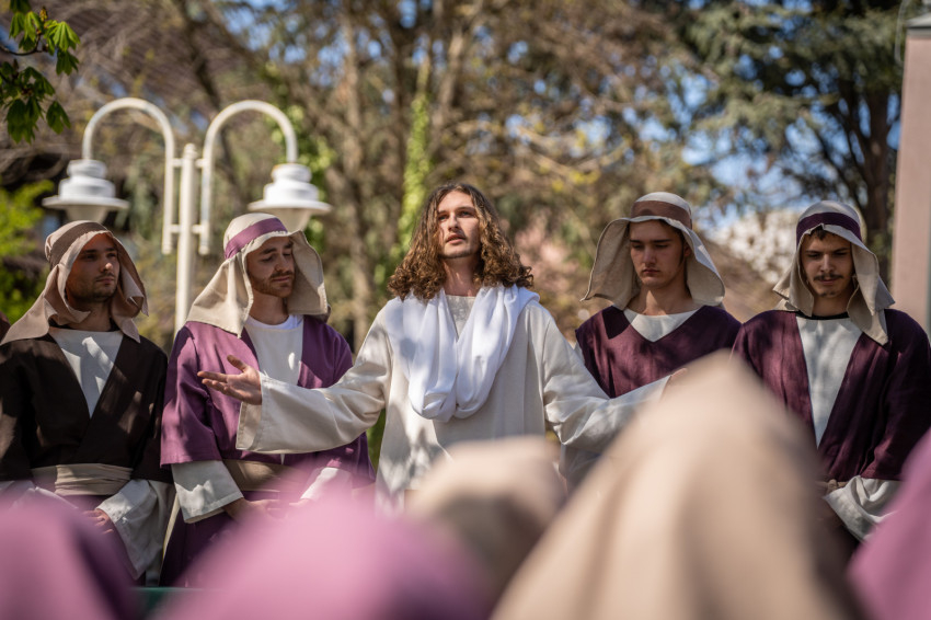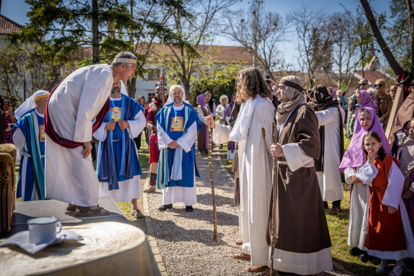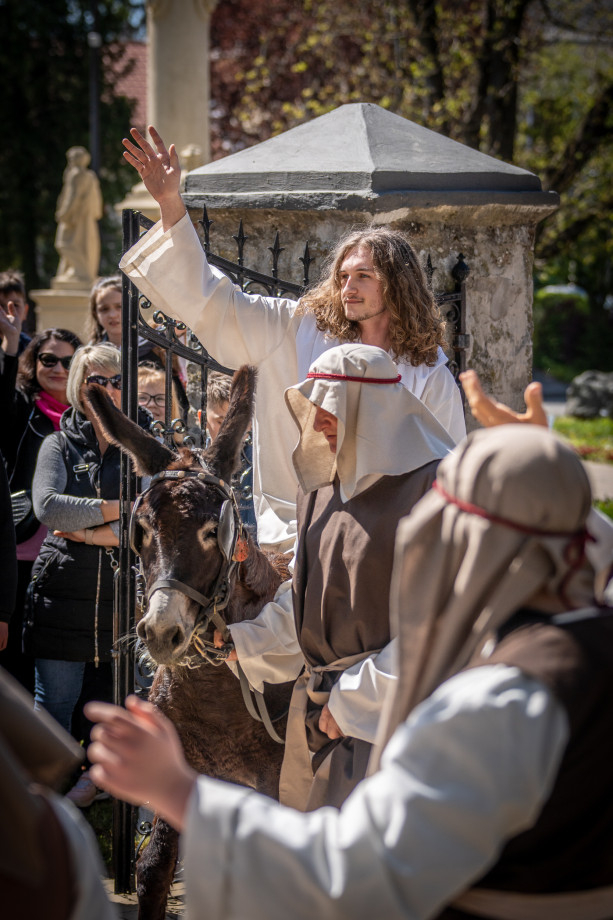 A szabadtéri helyszín különleges atmoszférát kölcsönzött az előadásnak, és lehetőséget teremtett arra, hogy minél többen részesei lehessenek az élménynek. Az előadás egyik emlékezetes pillanata Jézus jeruzsálemi bevonulása volt, az őt megformáló szereplő valódi szamár hátán érkezett. A jelenet arra mutat rá, hogy Jézus nem hódítóként érkezik, hanem szelíd, alázatos Megváltóként. A szamár megjelenése – különösen a gyermekek számára – élővé és kézzelfoghatóvá tette a bibliai történetet, sokak arcára mosolyt csalt, miközben mély üzenetet is közvetített.