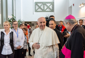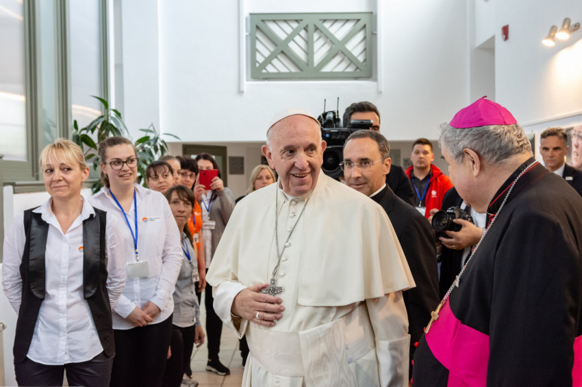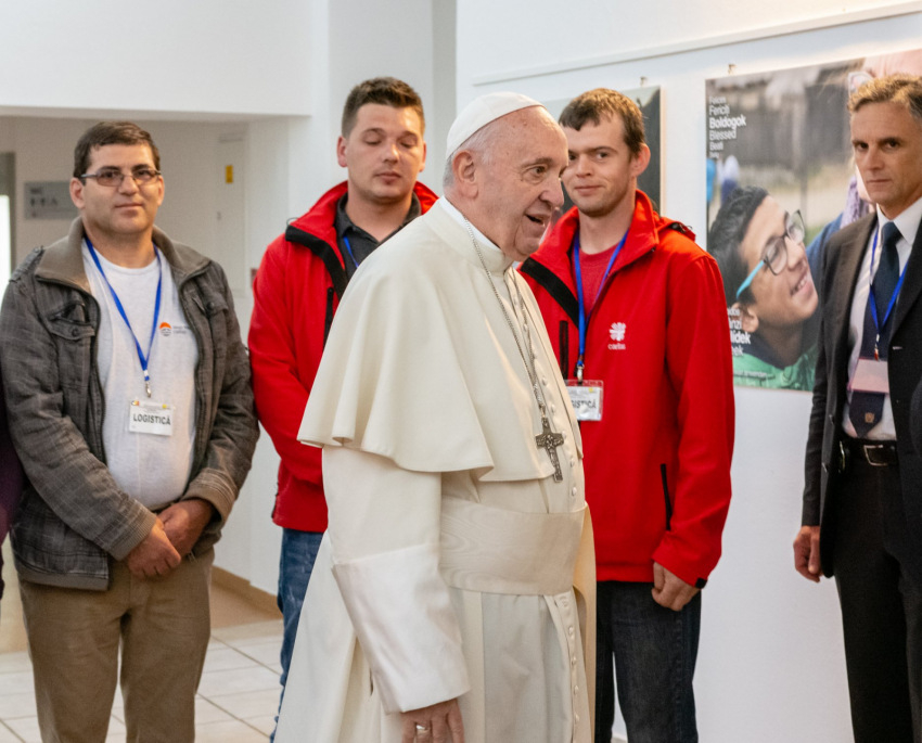 – Ezt nem lehet befogadásnak tekinteni. Annak az esélye, hogy betér hozzánk a Szentatya, lehetőséget adott arra, hogy kicsit próbáljuk Márton Áron boldoggá avatásának ügyét előbbre vinni, kiállítást készítettünk, ez került az előtérbe; a Caritas tevékenységét ábrázoló, a nyolc boldogságra felfűzött képsorok adták a hátteret. A kérdésre visszatérve: nem Őszentsége keresett szállást, hanem mi örültünk, hogy minket választottak ki a vendéglátására.