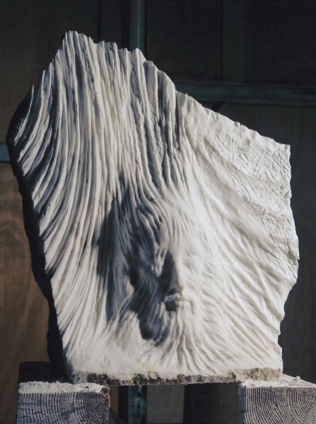 – Mostanában egy kisebb szobron is dolgozom. Nagyon érdekel a Jézus arcát takaró lepel, de úgy, hogy a természet formáiba áttűnve valamiféle organikus valósággá válik. Közben folytatom azt az összetett kompozíciót, amely a négy őselemet: a földet, a vizet, a tüzet, a levegőt ábrázolja, valamint az ötödiket, az éterit. Spirituális értelemben: az „átlényegültet”, ami valójában a láthatók láthatatlanját jeleníti meg. Egyidejűleg immanenciája és transzcendenciája az őselemeknek. Figurális, sokalakos alkotás lesz. Az emberen, a természeten keresztül mutatom meg mindezt. Mondjuk a föld esetében ott a születés és a halál, az újszülött és az aggastyán, a begyökerezettség és a kiszakadás. A cseppkő lassú növekedése például olyan, mint az ember örök spirituális fejlődése. Ezért van fontossága az ötödiknek, amely felemeli, összefogja az egészet, miközben minden feléje konvergál. Régi tervem volt ez a szobor, amelynek most egy kisebb, közel kétméteres változatát faragom márványba. Utána szeretném megcsinálni nagyban. Az már egy nagyjából tízméteres alkotás lenne. Nem a látható valóság az, ami inspirál, hanem a spirituális valóság, ami bevilágítja a belső utamat. Számtalan szobor vár a „születésre”. Úgy érzem, nem dolgozom elég gyorsan, annyi minden van még bennem. De hát hol, kinél is van ez a bent?