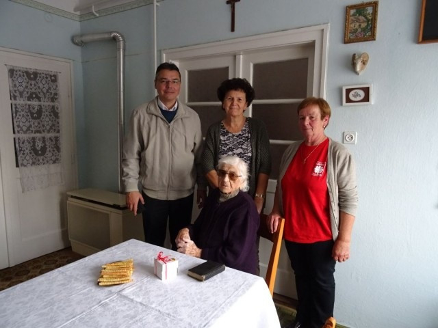 Előző nap, október 26-án Gőgh Tibor és a karitászcsoport két munkatársa otthonukban látogatták meg azokat az időseket, akik nem tudtak részt venni a szombati ünnepségen.