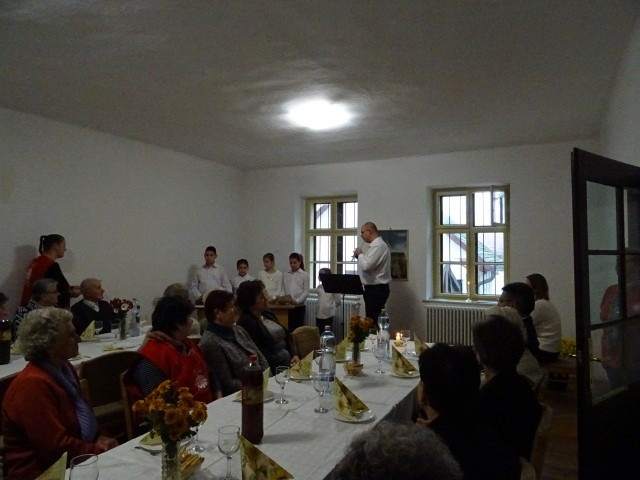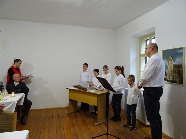 A karitászcsoport munkatársainak gyermekei zenés műsorral kedveskedtek az ünnepelteknek.
