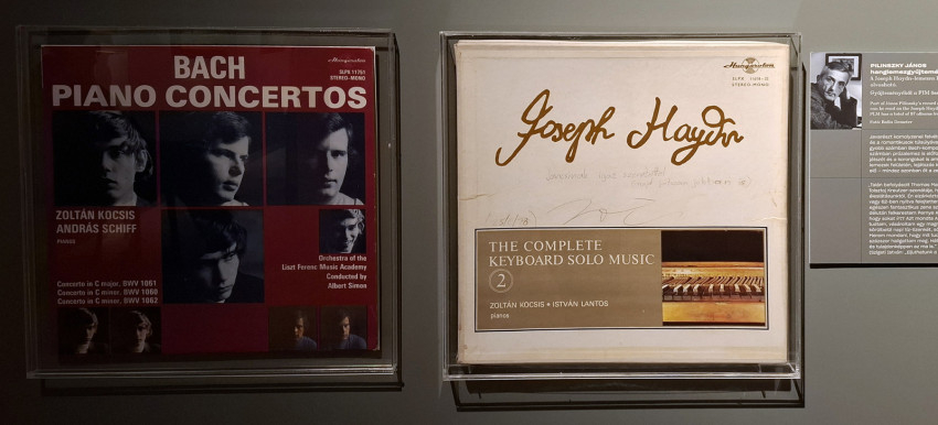 Azt sokan tudhatják, hogy Pilinszky János jó baráti viszonyban volt Kocsis Zoltánnal. Több fényképfelvétel is tanúskodik erről. De azt talán már kevesebben tudják, hogy Pilinszkynek nagy hanglemezgyűjteménye volt. A Petőfi Irodalmi Múzeum kilencvenhét albumot őriz tőle. A kiállításon két lemezborítót láthatunk, az egyiken, a Joseph Haydn-lemezen Kocsis Zoltán ceruzával írt dedikációja olvasható: „Jancsinak igaz szeretettel (majd játszom jobban is, 1978).”