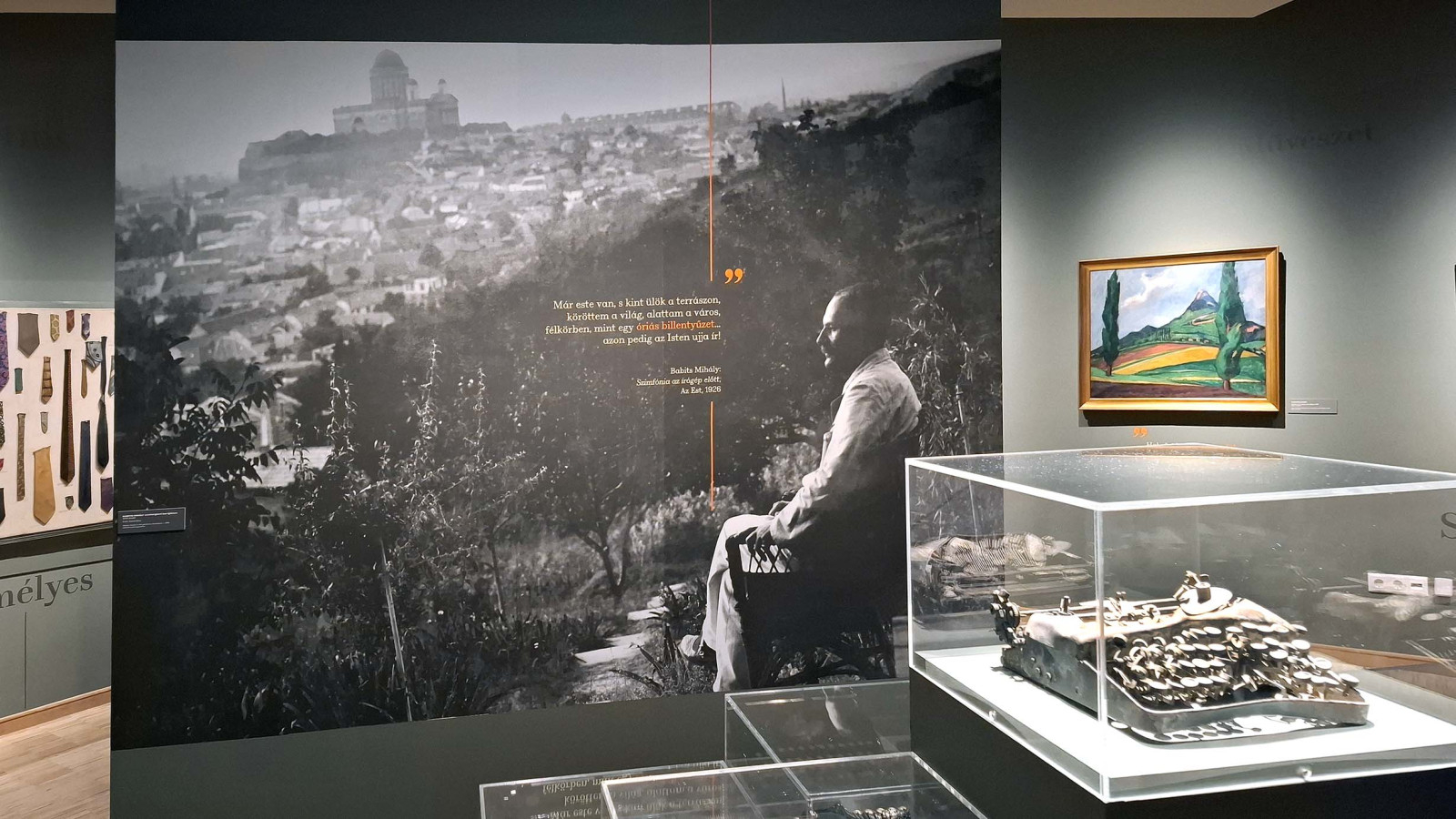 Babits Mihály méretes faliposzteren látható, amint esztergomi házának kertjében ül, szemben az ország egyik legszebb panorámájával. „Már este van s kint ülök a terrászon, köröttem a világ, alattam a város, félkörben, mint egy óriás billentyűzet… azon pedig az Isten ujja ír!” (Babits Mihály: Szimfónia az írógép előtt. Az Est, 1926)