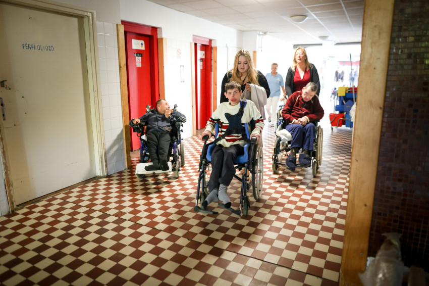 Giflo Péterrel, a közösségi befogadás program szakmai vezetőjével haladunk át a korábbi Topház folyosóján, ahonnan a sokágyas szobák nyíltak. „El sem tudjuk képzelni, milyen volt. Orrcsipesz nélkül nem tudtunk volna bejönni” – utal Vecsei Miklós, az MMSZ alelnöke a 2017-es állapotokra. Akkor a brüsszeli székhelyű Validity Foundation (Mentális Sérültek Jogaiért Alapítvány) hívta fel a figyelmet a méltatlan körülményekre. Ennek hatására született egy kormányhatározat, amely átadta az intézményt a karitatív szervezetnek, hogy valósítsák meg a férőhelykiváltást, amihez az állam forrást is biztosított, két részletben: közel hatmilliárd forintot. 2018-ban kezdődött meg az építkezés, melynek eredménye összesen nyolc ház Gödön, Erdőkeretesen, Őrbottyánban, Veresegyházon – mondta el a Giflo Péter.