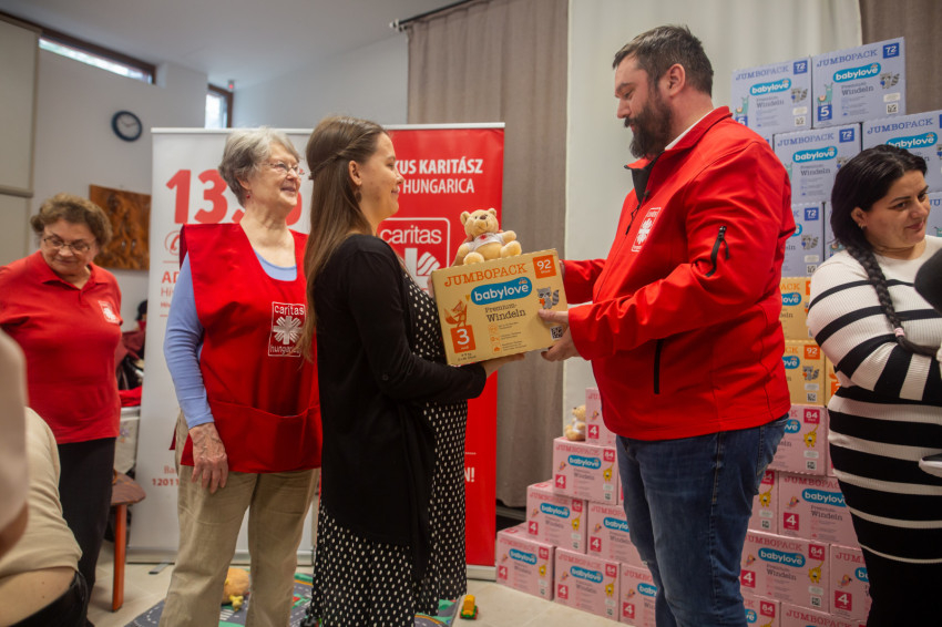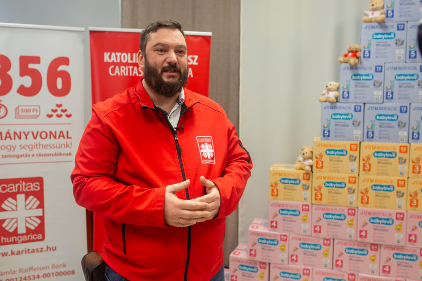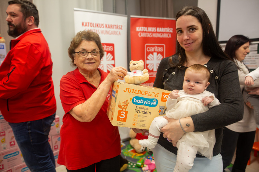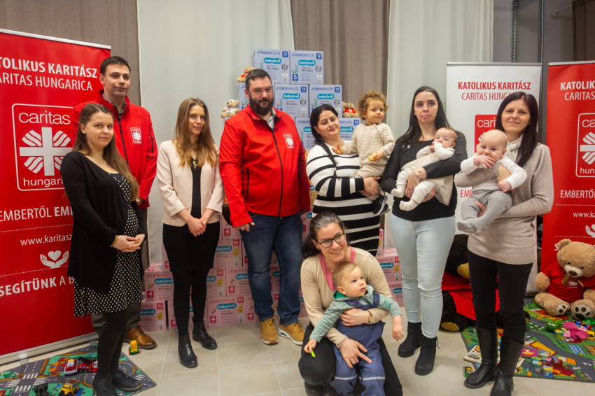 A megjelenteket Zagyva Richárd, a Katolikus Karitász országos igazgatóhelyettese köszöntötte. Elmondta, a családok fél évre elegendő pelenkát kapnak a DM (Drogerie Markt) üzletlánccal való együttműködés keretében, ami a gyerekek érkezését követően hathatós segítség a családnak. Az igazgatóhelyettes örömmel látja, hogy együttműködésük fejlődik, ma már gyerektáboraikat is támogatja az üzletlánc. Zagyva Richárd kiemelte, hogy az adományokat önkénteseik személyesen viszik el az otthonokba, így ez a családokkal való találkozás alkalma is.