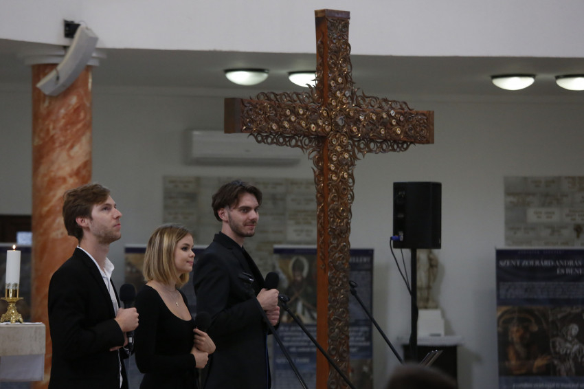 A bíboros emlékeztetett rá: ez az a kereszt, amit a Szentatya megáldott a vatikáni apostoli palotában, hogy amerre megy, imádkozzunk együtt, és emlékezzünk azokra a szentekre, akiknek az ereklyéjét ez a kereszt őrzi, próbáljuk meg követni a példájukat, gondolkozzunk el azon, mi az, amit Krisztusért tehetünk ebben a világban.