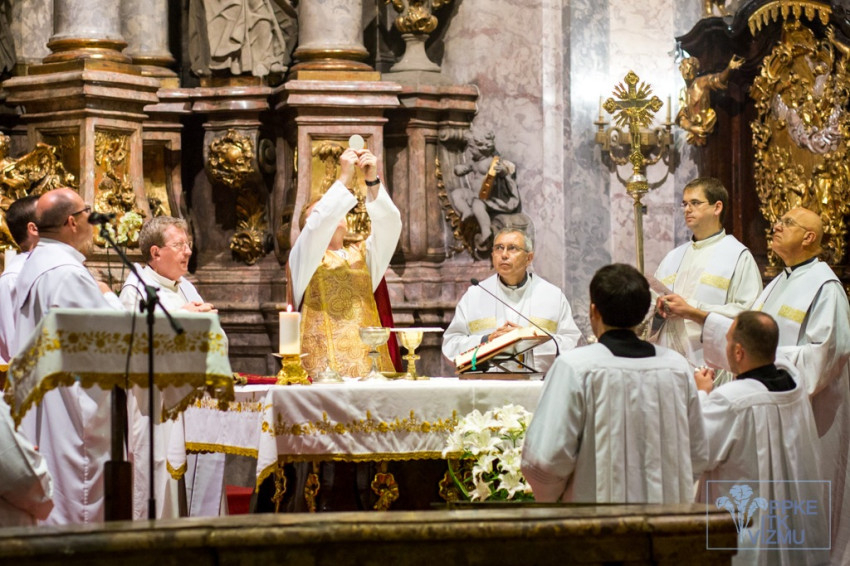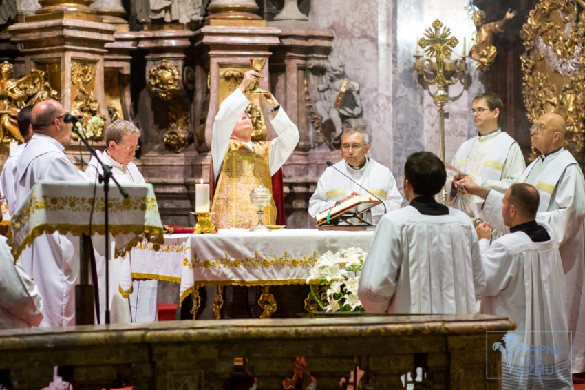 Szemünk nagyon gyakran a sötétségben tapogatódzik. Azt mondhatnánk, vakok vagyunk, mert nem látunk. Azonban a Szentléleknek a tüze és a Léleknek a belső ereje, amely áthatja magát az Egyházat – hiszen Jézus Krisztus távozásakor vigasztalót küldött nekünk, magát a Szentlelket – jelen van az Egyházban, az Egyház döntéseiben, és jelen van közösségünkben. Szeretett tanítványok vagyunk, és így fogad minket az Egyház; így fogad minket ez a templom, amikor belépünk, mint hallgatók és oktatók; határozott és tudatos gondolkozással. Belépünk az ajtón, hogy szembenézzünk a Tökéletessel. Magával a Háromságos Egyistennel, aki előtt méltó alázattal leborulnunk. Aki előtt bármilyen szenvedés is a legnagyobb dicsőség koronáját hordozza. Nagyon nehéz ezt megérteni fiatal szívvel és lángoló lélekkel.