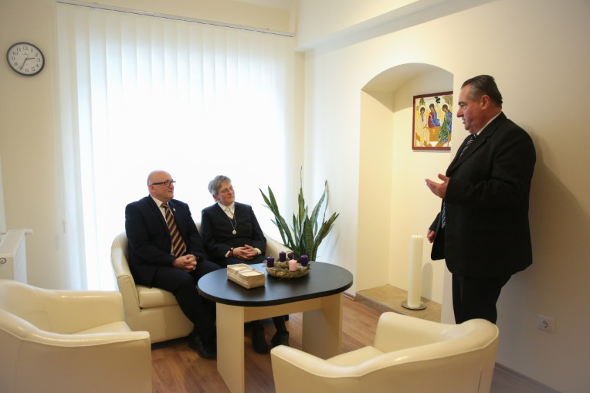 „Ferenc pápa terápiás egyházról beszél. Mi abban hiszünk, hogy itt és most erre van a legnagyobb szükség” – teszi hozzá Sipos Zsolt. „Igen, bennem is erősen dolgozik Paul Zulehnernek az a mondata, hogy a moralizáló kereszténységtől egyre inkább a terapizáló felé kellene fordulni, elmozdulni – folytatja kollégája gondolatát Molnár Ferenc. – Ezért amikor most megmutatjuk önöknek beszélgetőszobáinkat, szakrális tereinket, közben hangsúlyozzuk, hogy a szakrális teret valójában a lelkigondozó teremti meg. Ő segíti hozzá a meghallgatást kérőt ahhoz, hogy Isten jelenlétében tudjon dönteni élete nehéz kérdéseiről. Ehhez paradox módon arra sincs szükség, hogy a segítségre szoruló ember vallásos legyen. Mint mondják, a lelkigondozó sokat beszélget Istennel a vele találkozókról; azokról, akiket meghallgat – de csak akkor beszél nekik Istenről, ha ezt kifejezetten kérik. Hozzánk bárki jöhet, nem kell hozzá katolikusnak, de még csak vallásosnak sem lenni.”