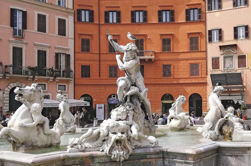 A Piazza Navona ékessége a Négy folyó kútja, közepén az egyiptomi obeliszkkel, hátterében a Francesco Borromini tervezte Sant’Agnese in Agone-templommal. A lenyűgöző szoborcsoport mozgalmasságát csak fokozza az állandóan csobogó víz látványa.
