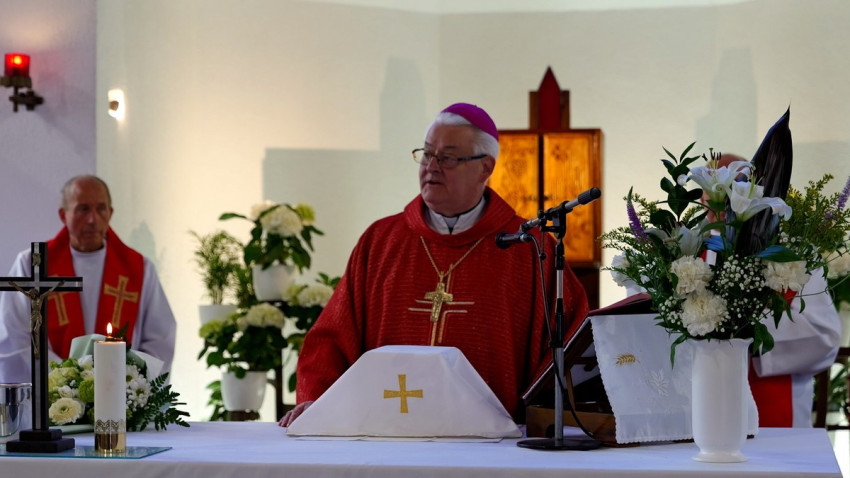 Spányi Antal püspök Ugrits Tamás pasztorális helynökkel, Fábry Kornél plébániai kormányzóval és vendégpapokkal együtt mutatott be szentmisét. A megyéspüspök arról beszélt: a Jó Pásztor gondoskodik és törődik övéivel, vezet minket, ahogy egykor az apostolokat is. Tudja, mire van szükségünk, hogy a bűn sebeit begyógyítsa, és mindig velünk marad. Elküldi Szentlelkét, hogy a mi életünk is megváltozzon, ahogy a tanítványoké, amikor a Lélek erejében megvilágosodtak, erővel és örömmel hirdették az evangéliumot. A püspök arról is beszélt, az apostolok mindent tudtak, amit Jézus meg akart tanítani nekik, idézték szavait, hirdették csodáit. Jézust mégis csak kívülről ismerték, a szívükben még nem volt ott az Úr. Amikor elfogták és kereszthalálra ítélték Jézust, a tanítványok elfutottak, Péter meg is tagadta Őt. Bár mondta nekik, hogy feltámad majd, mégis amikor hallották a hírt, nem hitték el. Bezárkóztak és féltek. Amikor megjelent nekik, kísértetnek nézték, ennie kellett velük és megmutatni sebeit Tamásnak, hogy higgyenek. De pünkösdkor betöltötte őket a Szentlélek, és valami különleges dolog történt velük. „Az apostolok, akik törtettek a pozíciókért Jézus mellett, és féltették magukat, most életük középpontjává tették az evangélium hirdetését. Bezárkózás helyett kinyitották az ajtókat. Péter apostol az ellenséges tömeg előtt hitvallást tett, és a tegnap még Jézust megtagadó tanítvány úgy beszélt, hogy megértették, befogadták szavait. Meg akartak keresztelkedni. Az imádság és a hit útja a hitvallás útja, ez így van kétezer év óta. Ma is sok keresztény meghal a Jézusban, az örök életbe vetett hitéért. Az igazi karizma, hogy a Szentlélekre hallgatunk, és Jézust követjük bármi áron. Azt tesszük, amit Ő kér tőlünk. Ahogy a Szentatya is mondta a napokban, Jézusban kell élnünk és cselekednünk, Ő legyen életünk középpontja” – hangzott el a főpásztor beszédében.