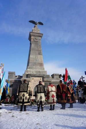 A történelmi esemény évfordulója alkalmából celebrált szentmisét követően az emlékezők a templomtól a turulmadaras emlékműhöz vonultak.