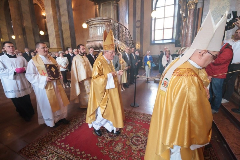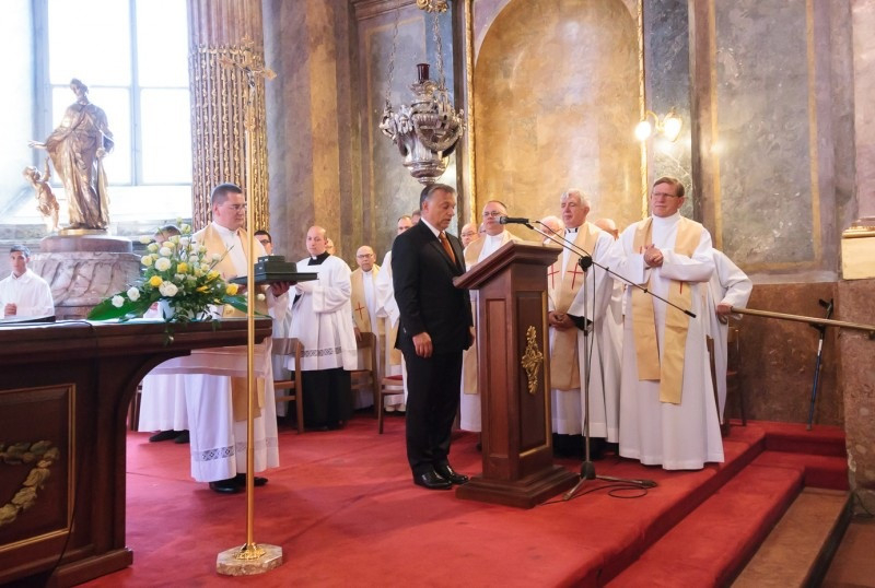 Az áldozás utáni könyörgést követően Orbán Viktor miniszterelnök személyesen jelentette be, hogy Pápai Lajos győri megyéspüspök a Magyar Érdemrend nagykeresztje polgári tagozata kitüntetést kapja. Ünnepi köszöntőjének kezdetén a miniszterelnök felidézte az egyház és az állam szétválasztásának dilemmáit. Kiemelte, az egyházi főpásztorok mindig sokkal magasabb helyről kapják szolgálatukért a jutalmat vagy a dorgálást. Földi hatalmak az isteni ítélethez nem tudnak hozzátenni.