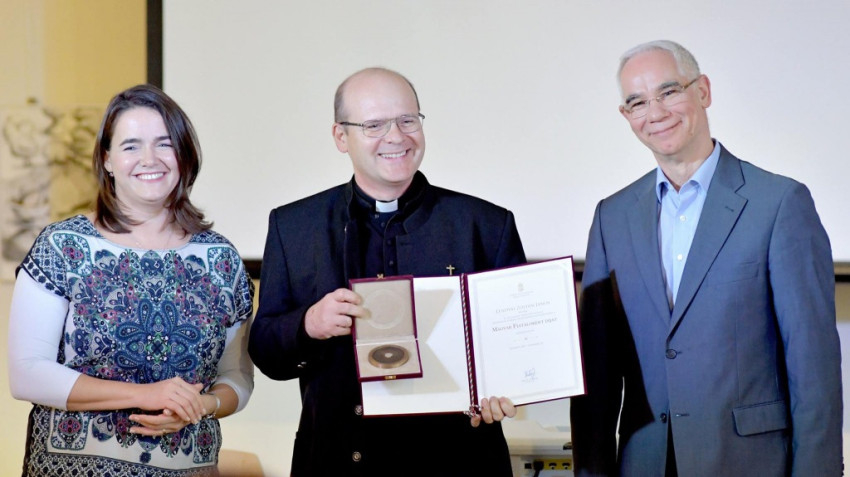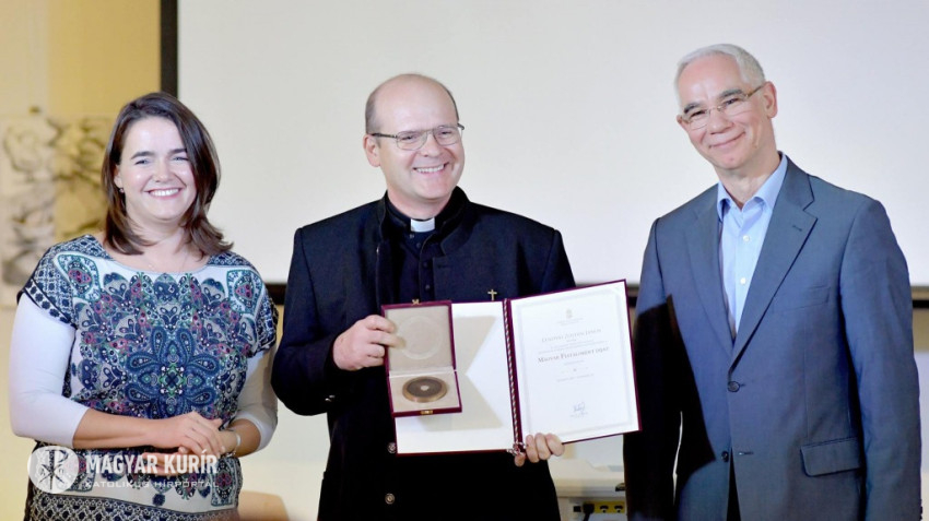 A másik díjazott tevékenységét méltatva azt emelte ki, hogy a katolikus pap nemcsak a lelkiekre, „felfelé figyel”, hanem észreveszi a bajba jutott embereket, a kérdező fiatalokat, és képes őket a nyelvükön megszólítani.