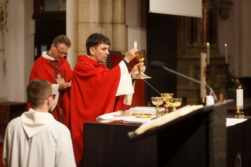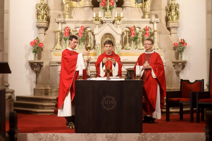A kerekasztal-beszélgetés után Vízi Elemér SJ főcelebrálásával ünnepi szentmisét mutattak be a Jézus Szíve-templomban az önálló magyar jezsuita provincia megalakulásának évfordulóján, megemlékezve a tartomány védőszentjeiről, a kassai vértanúkról, akik közül ketten a rend tagjai voltak.