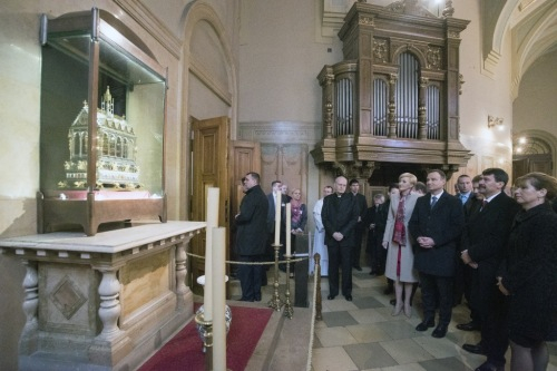 A szentmise után a két köztársasági elnök és kíséretük megtekintette a Szent Jobb ereklyét, amelynek történetét Erdő Péter ismertette a vendégekkel. Közben a bazilikában Georg Friedrich Händel és Giulio Caccinni egy-egy műve hangzott fel a Przemyśli Zenetársaság művészeinek előadásában.