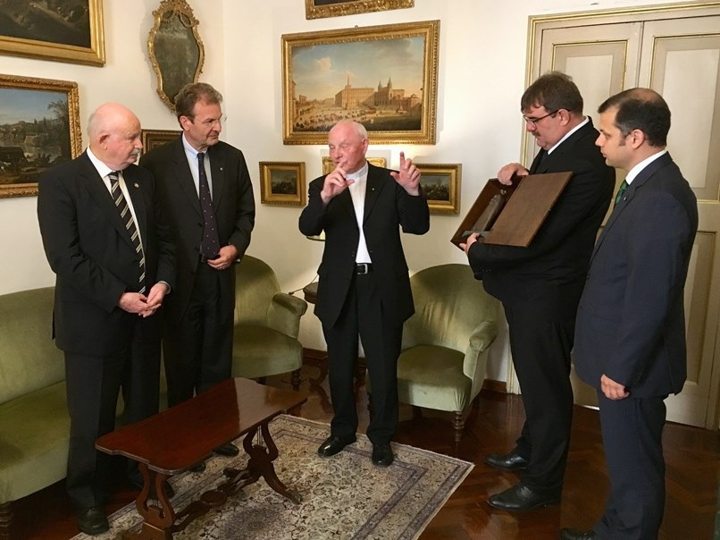 A magyar küldöttség az utóbbi időszakban megvalósult hazai és határokon túli karitatív tevékenységekről és humanitárius akciókról, szociális és egészségügyi programokról tájékoztatta a rend vezetését. Kozma Imre, a Magyar Máltai Szeretetszolgálat alapító elnöke arra emlékeztette a nagymestert, hogy jövőre lesz a 30. évfordulója annak, hogy az akkor újonnan létrejött Magyar Máltai Szeretetszolgálat befogadta a Budapesten várakozó keletnémet menekülteket. A zugligeti templom kertjében 1989. augusztus 14-én megnyitott első menekülttábor történelmet formáló humanitárius akcióvá vált, három hónap alatt – a keleti és nyugati blokk országait elválasztó határ megnyitásáig – 47 ezer menekült fordult meg a budapesti táborokban. A befogadás emlékére szobrot állítottak Zugligetben, Kozma Imre ennek kicsinyített mását ajándékozta a nagymesternek.