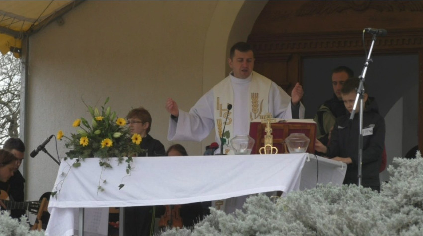 Ezt követően Zmijan Adalbert lengyel atya mutatta be az ünnepi szentmisét, akinek szülei is a lengyel Schönstatt mozgalom tagjai. Prédikációjában bátorságra és alázatra buzdította a résztvevőket. „Egyensúlyt kell teremtenünk, hogy ezt a látszólag két ellentétes erényt jól tudjuk használni a mindennapokban” – fogalmazott.
