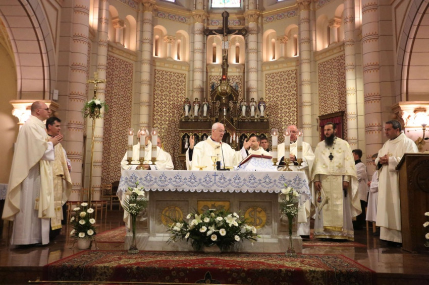 Ternyák Csaba az ünnepi szentmisét Palánki Ferenc jelenlegi, Bosák Nándor nyugalmazott debrecen-nyíregyházi megyéspüspökkel és Szocska Ábel nyíregyházi apostoli kormányzóval együtt mutatta be. Homíliájában Ternyák Csaba először elődjének, Samassa József egri érseknek a templomszentelés ünnepén Szabolcs vármegye küldöttségéhez intézett beszédéből idézett. A főpásztor hangsúlyozta, a hajdani főpásztor nem a Magyarok Nagyasszonyáról, nem is Szent István királyról, hanem fontos társadalmi kérdésekről, a világi hatóság és a vallási elöljárók együttműködésének fontosságáról szólt. „Mivel a politikai hatalom csak külső legalitással bír, minden erejével sem képes a társadalom igazi alapját megteremteni. A legalitás még nem elég biztosítéka a társadalmi rend megszilárdításának. Külső hatalom minden ereje csak odáig hathat, hogy megfékezze, lekösse a rosszat, s ekként felszabadulván a jó természeténél fogva kifejti termékenyítő erejét. A külső hatalom csak ezt teheti, és szerencse, ha sikerül neki elérni a célt azáltal, hogy lekötvén a rosszat a jónak meggyökeresedését mozdítsa elő. A jót magát, hogy az sikeres maradjon és állandó, csak a vallás képes biztosítani. Ennél fogva, ha a közhatalom, a társadalomnak és az országnak érdekeit komolyan szívén viseli, nem szabad ellenséges álláspontra helyezkednie a vallással. Mert ahol a vallás hatalma és varázsa csökken, ott komoly bajok törnek elő, és a felizgatott, forrongó népszenvedélyeket nem fogja útjukban megállítani. A felforgatási szellem, amint tapasztaljuk, már a társadalom legbelső gyökereit támadja” – idézte Ternyák Csaba Samassa Józsefet.