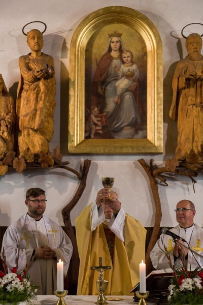 Spányi Antal püspök beszédében visszatekintett elődeink Mária-tiszteletére és kifejtette: évszázadokkal ezelőtt megjelent az irodalomban, a művészetekben, hogy a hívő emberek mint hazánk védasszonyához könyörögtek a Szűz Anyához. A török alóli felszabadulást is egyértelműen a Boldogságos Szűz Mária közbenjárásának tulajdonították. I. Lipót császár és király hazánkat 1693-ban ismét felajánlotta Szűz Máriának, követve ezzel Szent István példáját. A király pénzein is megjelenik a Szűzanya, de a régi magyar zászlók is eszünkbe juttatják, hogy Mária része nemzeti kultúránknak, katolikus kultúránk gyökereinek.