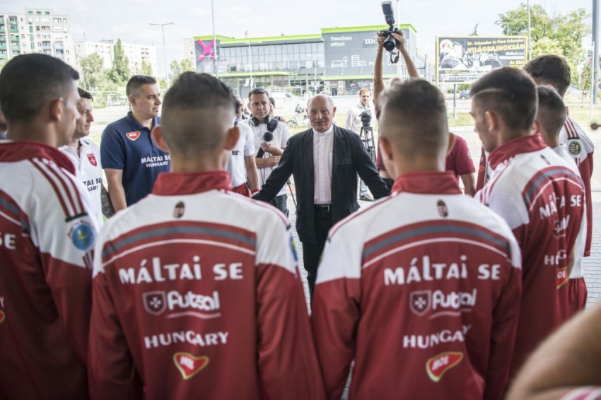 A sajtótájékoztató végén Kozma Imre atya áldását kérte a csapat. A Szeretetszolgálat elnöke azt hangsúlyozta a fiataloknak, hogy az áldás azt jelenti: igen. Az Istentől „igen”-t kérnek arra, hogy holnap is egészségesen ébredjenek, „igen”-t a törekvéseikre, és „igen”-t a győzelmekre. „Természetesen ez nem azt jelenti, hogy legyőzünk valakit, hanem a játékunkkal meggyőzzük azokat, akikkel sportszerűen küzdünk” – mondta Kozma Imre.