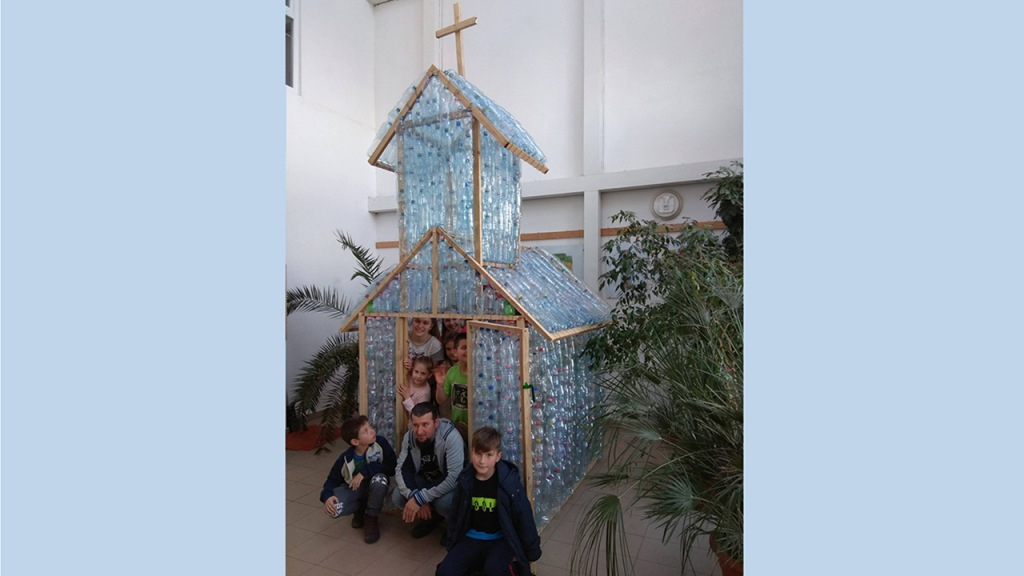 A pályázat kapcsán több ezer PET-palackot gyűjtöttek a gyerekek, majd Ács Enikő tanítónő ötlete alapján felépítették a máriapócsi fatemplom műanyag mását: a flakonokat a karbantartó munkatárs segítségével készített állványzatra rögzítették a gyerekek.
