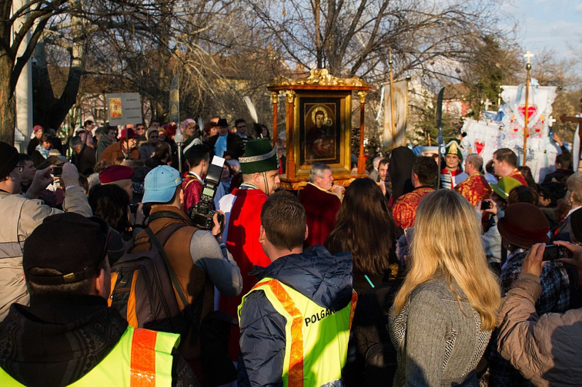 A máriapócsi könnyező Istenszülő kegyképét Szegedről Nyíracsádra vitték, ahol a görögkatolikus Szent Piroska Általános Iskola udvarán fogadták a gyerekek, a nyíracsádi, környékbeli és a határon túli hívek.
