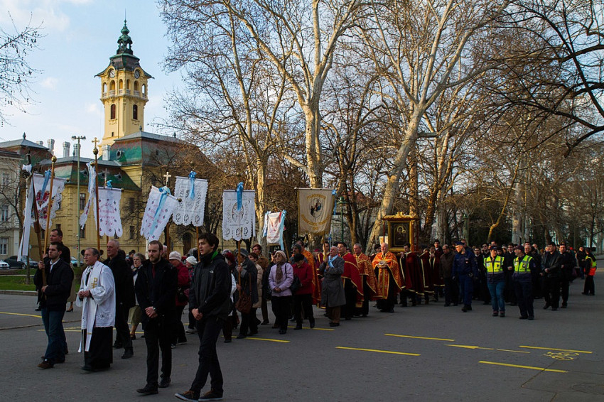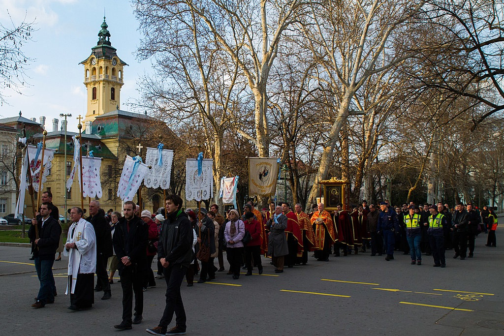 A kegyképet a szegedi görögkatolikus Szent Rozália-kápolna körül köszöntötték az összegyűlt hívek. A programok sorozata paraklisszal (könyörgő ájtatosság az Istenszülő Szűz Máriához) kezdődött, melyet Kocsis Fülöp püspök végzett. Közben a hívek hosszú sorban a kegyképhez járultak kifejezni tiszteletüket.