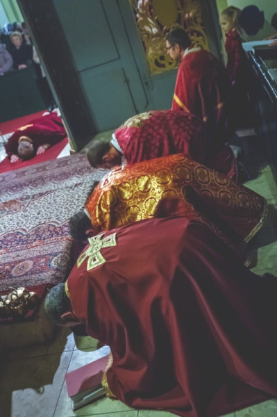 Az esti és éjszakai órák akathisztosszal (az Úr Jézus, Szűz Mária, egyes szentek tiszteletére, a halottak emlékére írt ájtatosság – a szerk.), zsolozsmával, gyertyás körmenettel és virrasztással folytatódtak.
