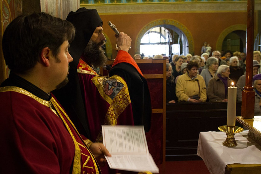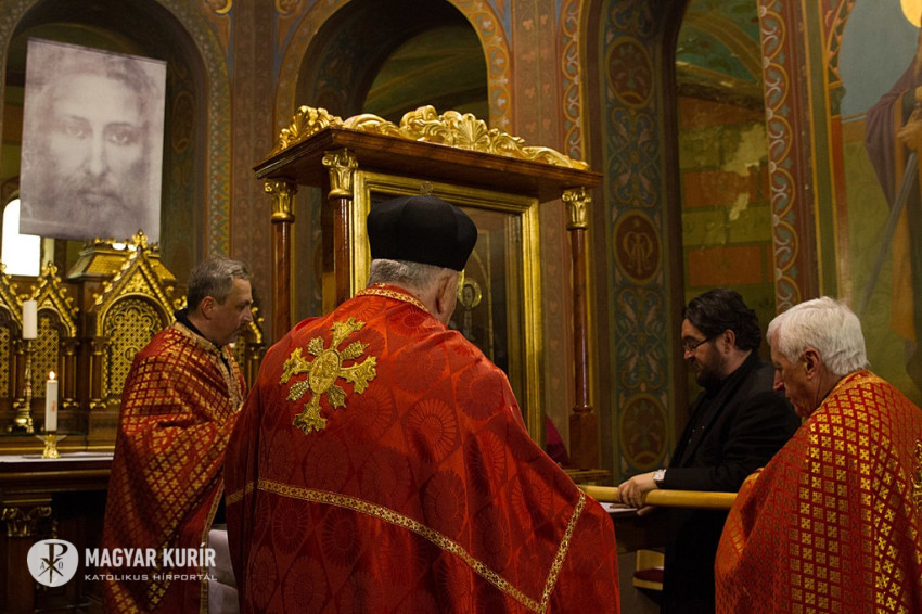 A lorettói litánia után akathisztoszt (ájtatosság az Úr Jézus, Szűz Mária, egyes szentek tiszteletére, a halottak emlékére – a szerk.) végeztek a görög és veszprémi kispapok közreműködésével. A hatodik irmosz (a bizánci szertartásban a kánon egy-egy ódájának első verse, mintastrófa; a rákövetkező versek ütem- és dallammintája – a szerk.) után Nagy Károly kanonok elmélkedett az anyaságról, az édesanya nagyon is konkrét, simogatásokban és gondoskodásban megnyilvánuló szeretetéről, amely feltétel nélküli.