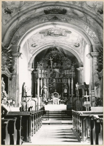 A templom belső terében a hajó három csehsüvegboltozatos szakaszra tagolódik, a szentélynégyszöget csehsüvegboltozat, a záradékot csúcsíves háromszögű boltsüveg-cikkelyek fedik. A falazott karzaton 1824-ben megújított orgona áll. A belső kifestést a 20. század elején megújították, ezt az állapotot az 1970-es évekbeli plébániai adatgyűjtés során készült felvételek őrzik; az 1998-as felújítás során ezt elfedték, és napjainkban a falak két színre színezettek.