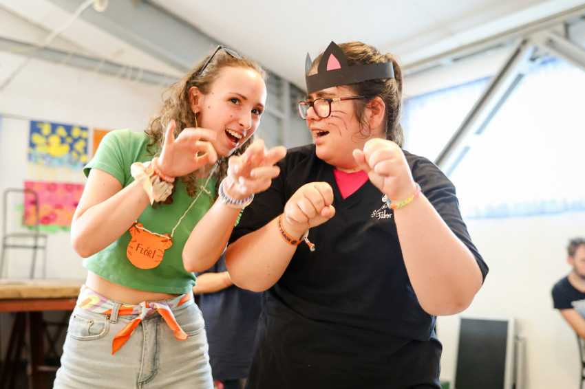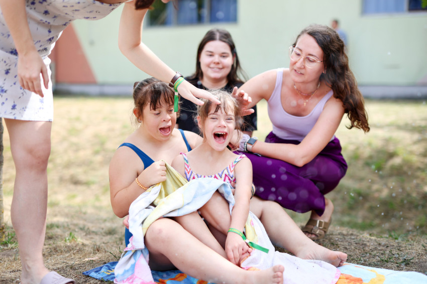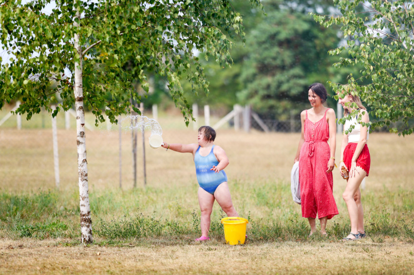 Nagy a visongás, mert a gyerekek vízzel locsolkodnak az egyik ház mellett. Látszik, hogy nagyon élvezik. Hartman Renáta második alkalommal vesz részt a táborban segítőként, két éve volt itt először. Tavaly az ifjúsági világtalálkozó miatt nem tudott jönni, bár vágyott a gyerekek közé. „Nagyon jó döntés volt, hogy visszajöttem! Én egészséges létemre sokszor nem vagyok felhőtlenül boldog. A táborozók között viszont van, aki nem tud egyedül enni, fürdeni, mégis puszilgat, ölelget. Itt tudok feltétel nélkül szeretni, úgy, ahogyan ők. Ha stresszesebb vagyok az év folyamán, visszaidézem, mit adtak ők nekem. Nézegetem a képeket, és egyből jobb lesz a kedvem.”