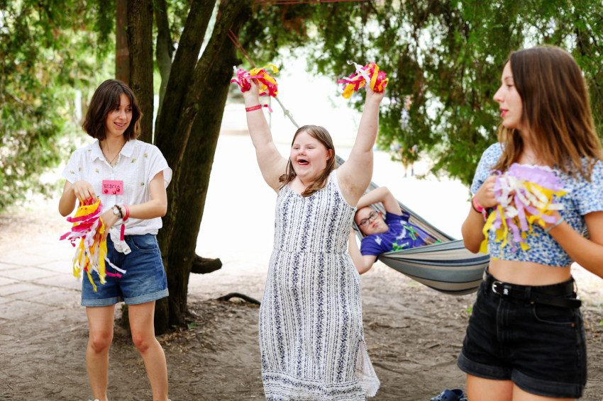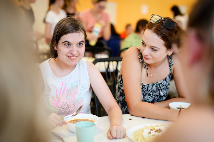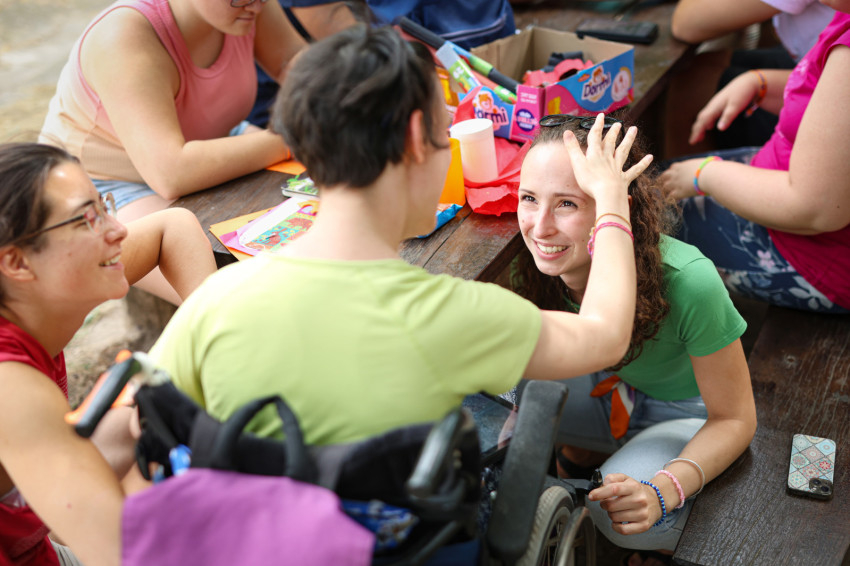 Renáta a Svetits-gimnáziumba járt, ott hallott először erről a lehetőségről. Másokat az ismerőseik beszámolói indítanak arra, hogy fogyatékossággal élőknek segítsenek. „Aki először van itt, az is nagyon jól érzi magát. Azonos értékrendű emberekkel találkozik, itt azonnal egymásra találnak a csoporttársak. A mi csoportunkban tíz segítő van, három fiú és hét lány. A gyerekek tizenegy-tizenkét évesek, és általában Down-szindrómával élnek. Az előző táborban harminc-negyven év közötti táborozók voltak a csoportomban. Jó látni, hogy a gyerekek is egymásra találnak. Tegnap egy kislány tologatni kezdte az egyik kerekesszékes lányt, beszélgetett vele, mosolygott rá. Látom, mennyit fejlődnek napról napra, egyre jobban beszélnek, megnyílnak.”