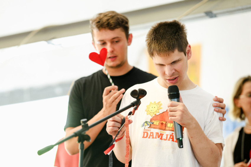 Tamással beszélgetek végül, aki nagyon nehezen formálja a szavakat, kerekesszékben ül. Ketten is segítenek nekem, hogy megértsem, amit mondani szeretne. Tamás több verset írt már, és sokszor szerepel a Szent Damján-táboros videókban. Három évvel ezelőtt a debreceni táborban vele is beszélgettem; megdöbbent, hogy emlékszik rám. Az pedig még inkább meglep, hogy megkér: a cikkemmel hívjam fel a figyelmet arra, hogy minél többen támogassák a Szent Damján-tábort.
