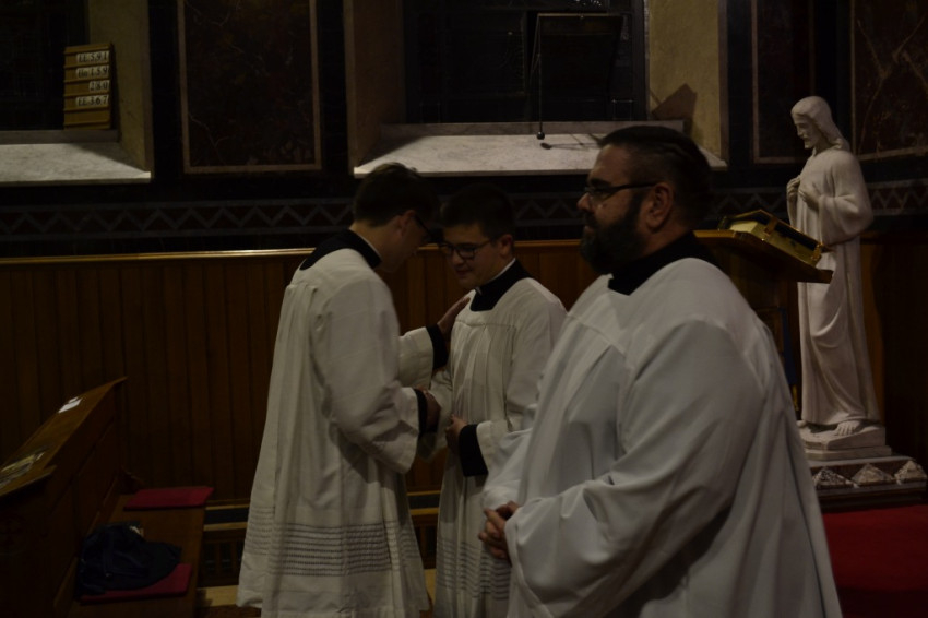 A Központi Papnevelő Intézet szokásainak megfelelően a beöltözés a növendékek és az elöljárók szűk közösségében történt a szeminárium kápolnájában. Szarka Zoltán (Kaposvári Egyházmegye) és Szlama Ákos (Székesfehérvári Egyházmegye) másodéves növendékek egy-egy felsőbb éves társukat kérték meg beöltöztetőjüknek.