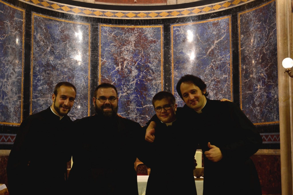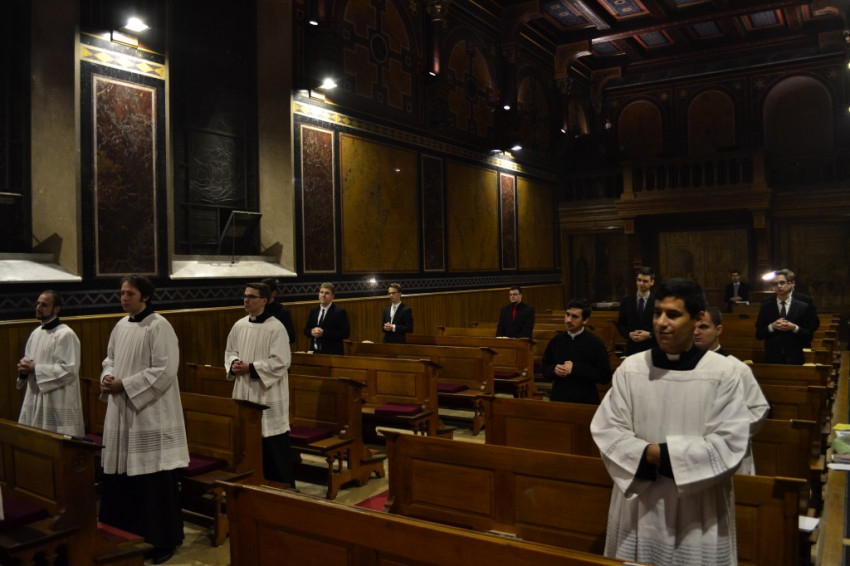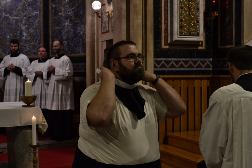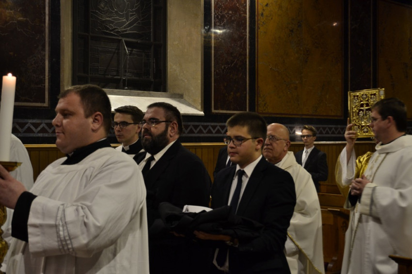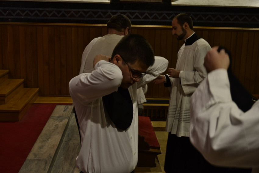 A beöltözési ceremónia végén a felsőbb éves növendékek köszöntötték a frissen befogadottakat. Hiszen – amint Marton Zsolt rektor prédikációjában is elhangzott – valójában ez az első látványos jele annak, hogy az elhívott fiatalemberek a pappá válás útjára léptek.