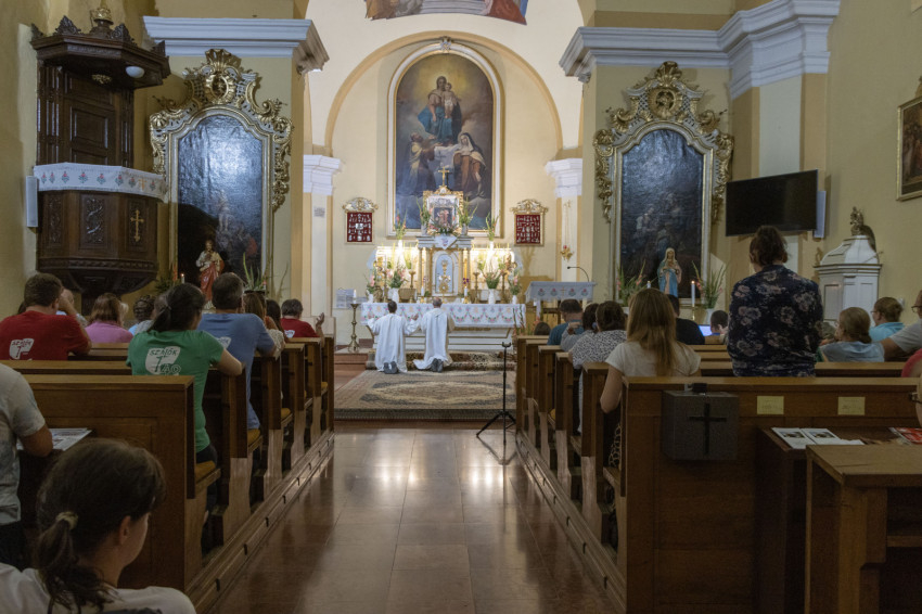 Novák Lajos újmisés a szentmise kezdetén a Gyermekszalók résztvevőihez is szólt, akik a találkozó alatt szentségimádáson is részt vesznek a különböző játékos programok mellett.