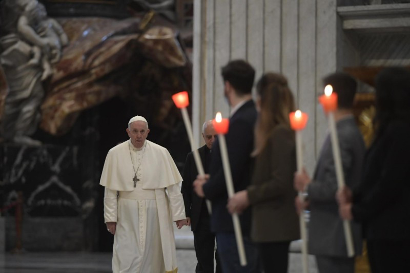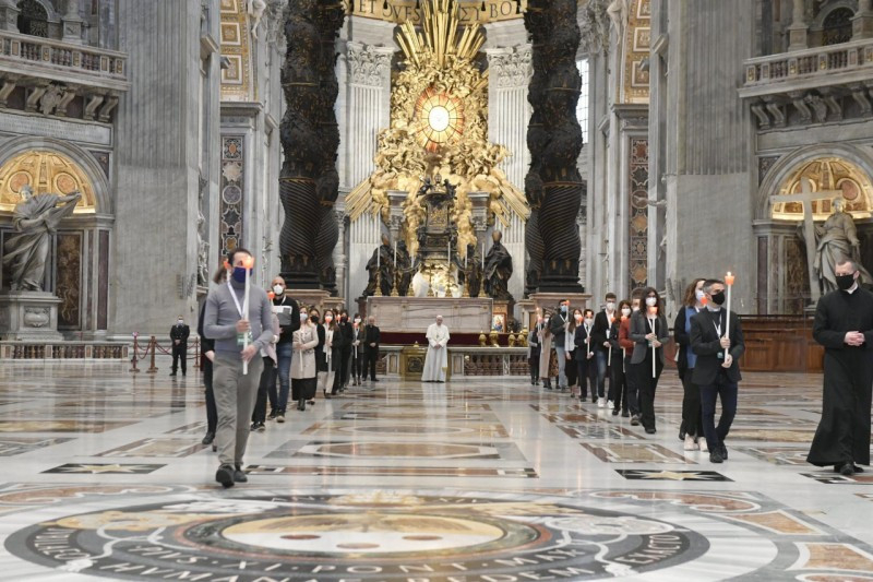 Május 1-jén a járványtól megsebzett emberiségért szólt a könyörgés a Szent Péter-bazilikában. Körülbelül 160 hívő, köztük sok kisgyermekes család vett részt a pápa által vezetett rózsafüzér imádságon.