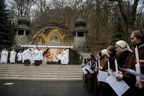 A délutáni szentségimádás alkalmával a szerzetes zarándokok megújították fogadalmaikat, és a Szűzanya oltalmába ajánlották hivatásukat.