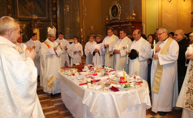 Negyven napja Urunk születésének örömünnepét ültük, és ma van az a boldog nap, amikor arra emlékezünk, hogy Jézust Szűz Mária és Szent József bemutatták a templomban. Azok a jámbor öregek, akik a Szentlélek késztetésére a templomba mentek, és ott, szintén a Szentlélektől megvilágosítva, felismerték az Urat, örvendező lélekkel tettek tanúságot róla. Hozzájuk hasonlóan mi is eljöttünk a templomba, az Isten házába, hogy találkozzunk Krisztussal, és felismerjük Őt a kenyértörésben addig is, amíg nyilvánvaló dicsőségben el nem jön – mondta a főpásztor, majd megáldotta a gyertyákat.