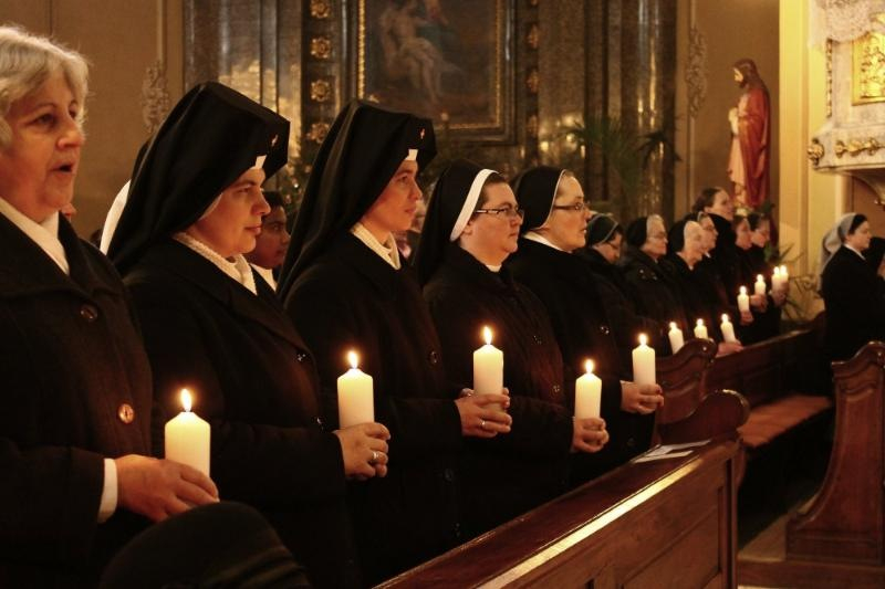 Ezt követően a szerzetesekhez fordult a püspök, és rámutatott: „Vannak emberek, akik megérzik, hogy Isten önátadó szeretetére hasonló szeretettel lehet csak válaszolni. Ők elindulnak ennek a szeretetnek az útján. De ez a dicsőség a mi életünkben is sokszor a kereszt sötétségében, annak éjszakájában lesz ragyogó. Isten felkínálja szeretetét minden keresztény embernek, mindenkinek törekednie kell tehát belépni Isten dicsőségébe, beengedni Isten világosságát a lelkébe, hogy rajta keresztül is látható legyen a világban. De vannak olyanok, akik külön fogadalmakkal kötelezik el magukat Isten dicsőségének szolgálatára. Ezek ti vagytok, kedves szerzetes testvérek. Vigyétek Isten örömét a világba! Az Istennek szentelt ember számára a legszebb példakép a Boldogságos Szűzanya kell, hogy legyen, aki örömmel fogadta Isten ajándékát és végezte azt, amit Isten rábízott, de ott állt a kereszt alatt is, és részese volt a szenvedésnek is. Amikor szenved, akkor is ő a Boldogasszony, mert tudja, hogy a dicsőség és a kereszt összetartozik. Kereszt van az életünkben, és lesz is, de van erőforrás is, ahonnan meríthetünk!”