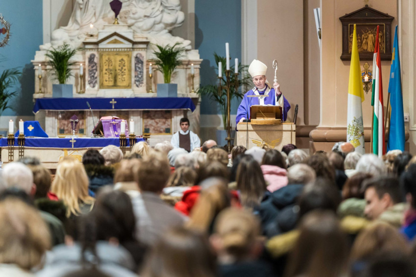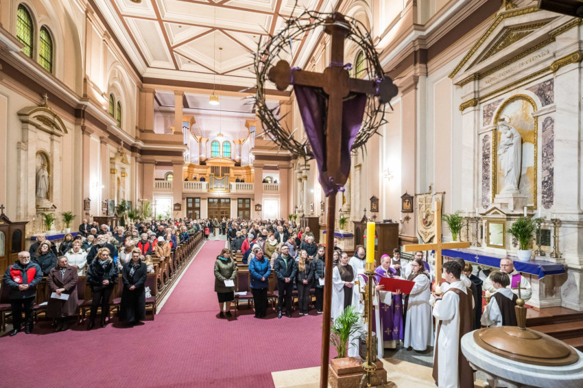 A keresztutat követő ünnepi szentmisén Udvardy György érsek hangsúlyozta, hogy az Egyház ebben a kegyelmi időszakban „föltárja Jézus személyének a titkát, föltárja a bűn titkát, az ember titkát, és föltárja a megtérés útját és titkát is mindannyiunk előtt.