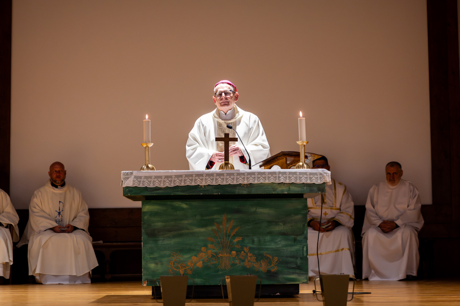 Berta Tibor püspök beszédében felidézte XIV. Leó május 8-án történt megválasztását követően mondott első beszédét, amelyben az új pápa a feltámadt Krisztus szavait idézte: „Békesség nektek!” Mint fogalmazott: