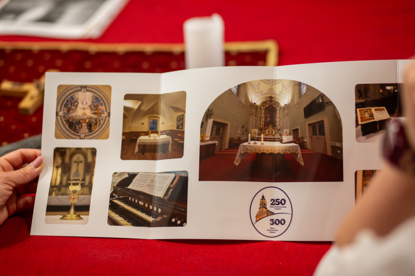 Mindenféle latin misekönyv és a plébánián fellelhető régi könyv is ki van állítva a tárlókban. A falakon a plébánosok portréi és hatalmas tablók, amelyek összefoglalják a plébánia és a templom történetét.