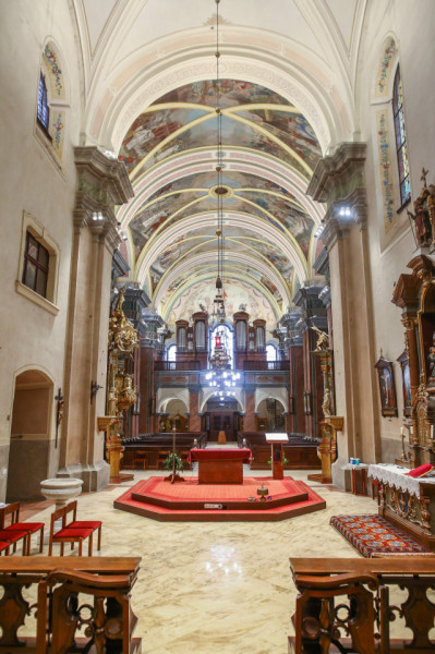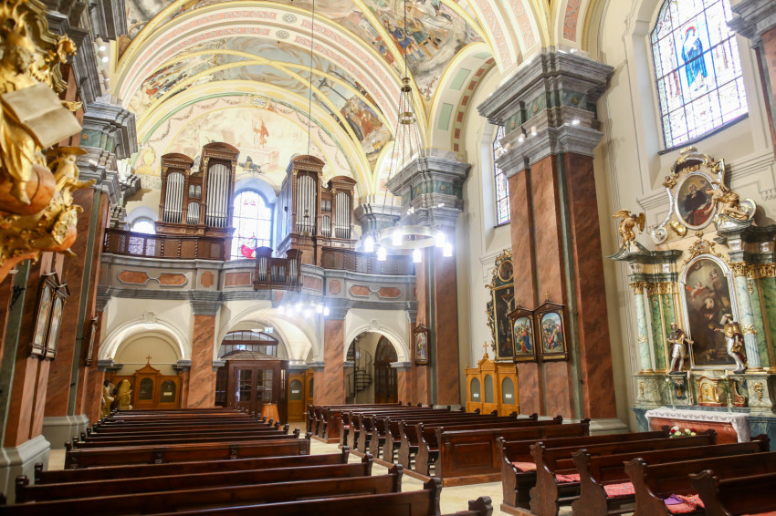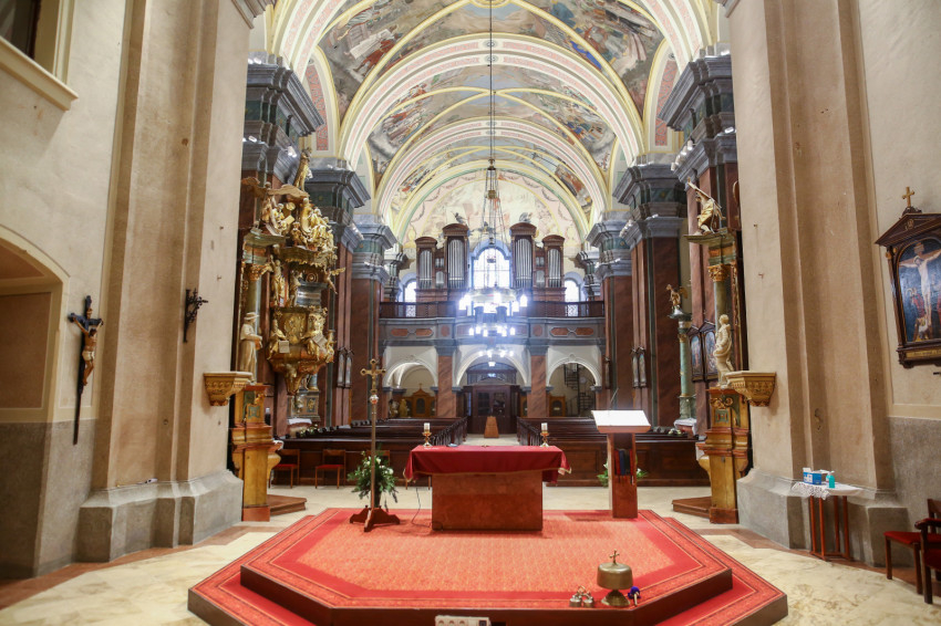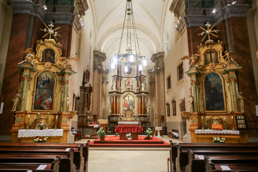 A beszélgetés után felkerekedünk, hogy megnézzük a két felújított templomot. A Magyarok Nagyasszonya-plébániatemplom, közkeletű nevén a Vártemplom 2019 végére készült el, majd a következő év elején megkezdődtek a belvárosi Nagytemplom és a rendház munkálatai. A beruházás másfél milliárd forint összegű kormányzati támogatásból valósult meg.